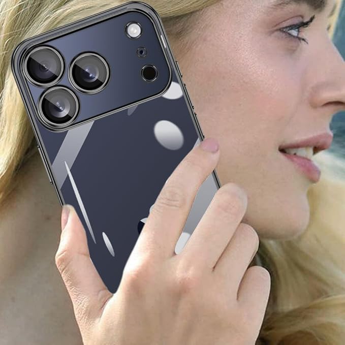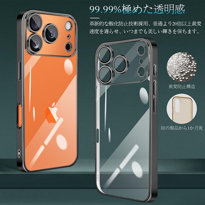 iPhone 17 Pro Max 用 ケース クリア 耐衝撃 iphone17pro max 用 カバー 軽量 薄型 TPU アイフォン 17ProMax 用 スマホケース ワイヤレス充電対応 擦り傷防止 落下防止 ストラップホール付き メッキ加工- ブラック