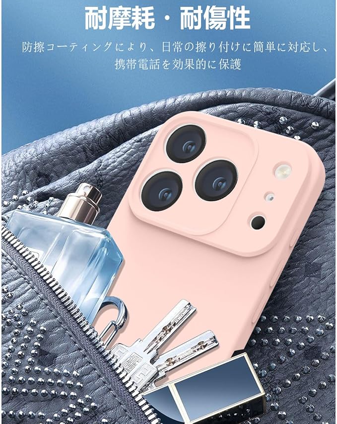用の iPhone 17 Pro Max ケース シリコン カバー 耐衝撃 ソフト素材 マット質感 さらさら手触り 傷付き防止 軽量 指紋防止 レンズ保護(ピンク)