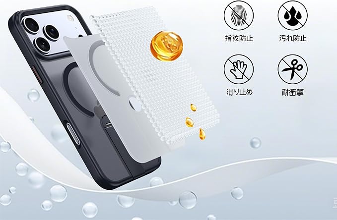 【MagSafe対応・強力マグネット内蔵】 内蔵された高磁力マグネットにより、最新のMagSafe充電器やMagSafe対応アクセサリーにしっかり吸着。充電位置がずれにくく、ケースを装着したままでも安定したワイヤレス充電が可能です。