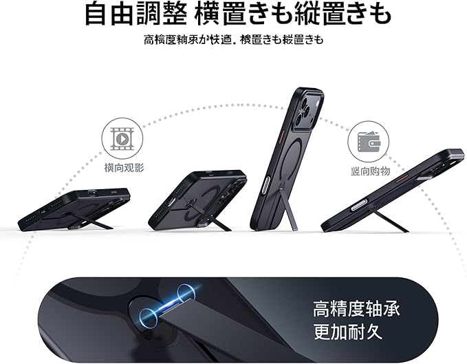 iPhone 17 Pro Max 用 ケース MagSafe対応 360 回転スタンド リング付き ストラップホール付き 耐衝撃 指紋防止 マットカラー 軽量 カメラ保護 ワイヤレス充電対応 (ブラック)