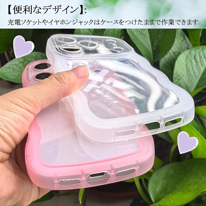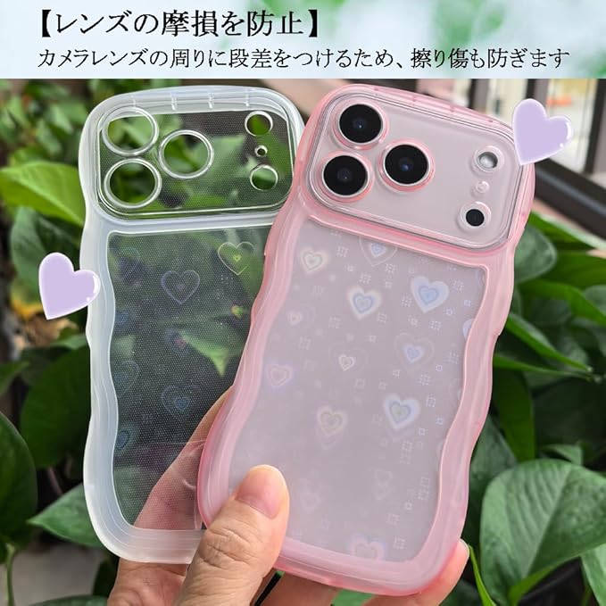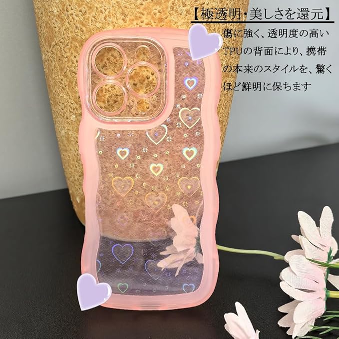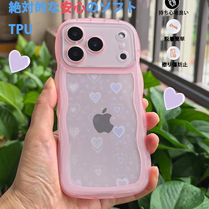 スマホケース 対応 iPhone 17 Pro Max 用 ケース クリア キラキラ かわいい ハートシール 波型 tpu ソフトケース ブリンブリン 薄型 軽量 傷防止背面 滑り止め 指紋防止 ストラップホール付き 透明 女性人気 アイホン17プロ 携帯カバー (クリア-ピンク)