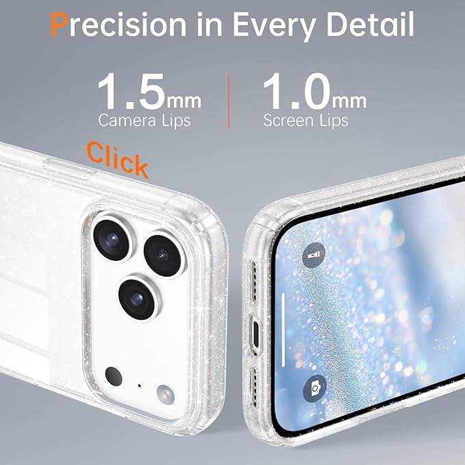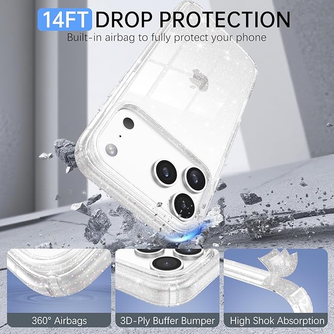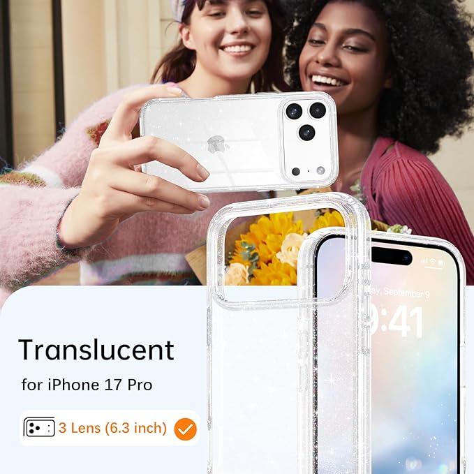 DUEDUE 互換性のあるスマホケース iPhone 17 Pro Max ケース キラキラ クリア アイフォン17 Pro Maxと互換性のある ケース アクリルバックパネル 一体型 全面保護 指紋防止 耐衝撃 軽量 黄変防止 おしゃれ ラメ入り 光沢