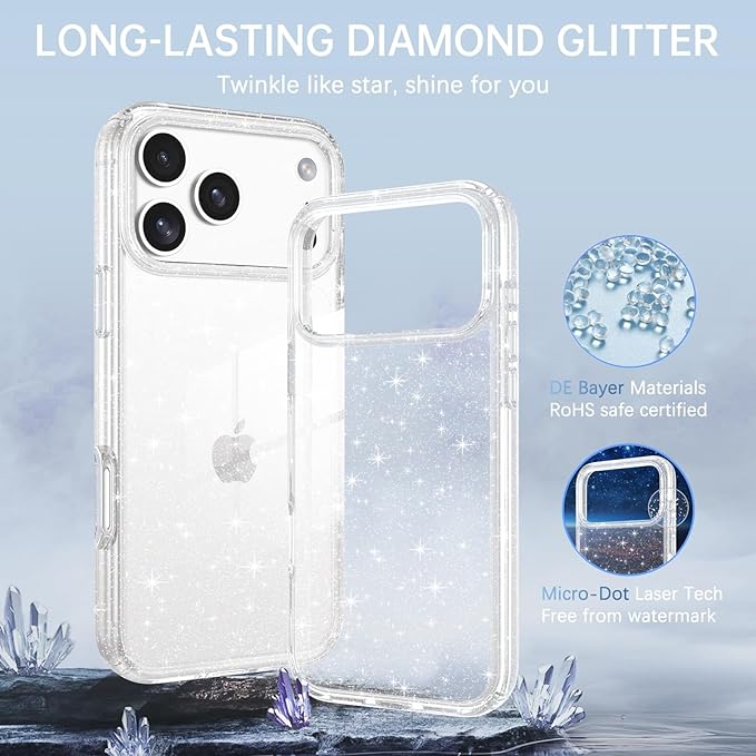 DUEDUE 互換性のあるiPhone 17 Pro Max キラキラスマホケース