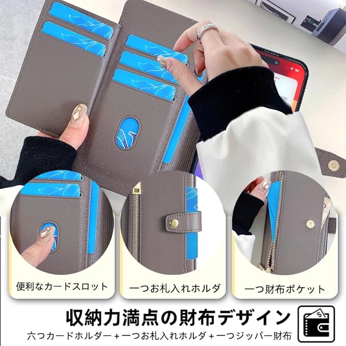 手帳型ケース ショルダーケース iphone 手帳型 ショルダーケース レザー for iPhone 17Pro Max 斜め掛けと手持ちー スマートフォンケース 財布型 対応 アイフォン 肌触り良い 便利