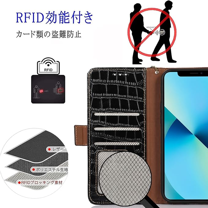 for iphone 17 Pro max ケース 手帳型 本革 ワニ柄 for アイフォン 17 プロ マックス 牛革 財布型 鰐柄 クロコダイル柄 耐衝撃 [RFIDブロッキング] カード収納 マグネット式ボタン 横置きスタンド機能 便利 財布型携帯 スマホケース ブラック Rureu