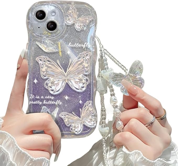 5. 透明なケースに蝶々やパールのモチーフがあしらわれ、女性らしさを最大限に引き立てます。可愛らしさと上品さを兼ね備えたこのデザインは、特別な日のプレゼントにも最適。友人や家族、大切な人への贈り物としても喜ばれること間違いなしです