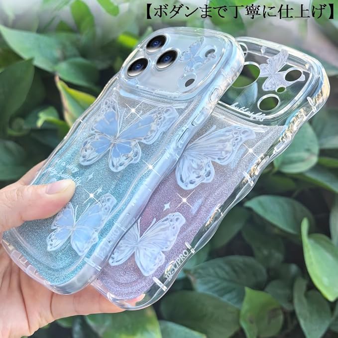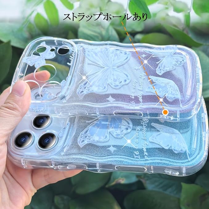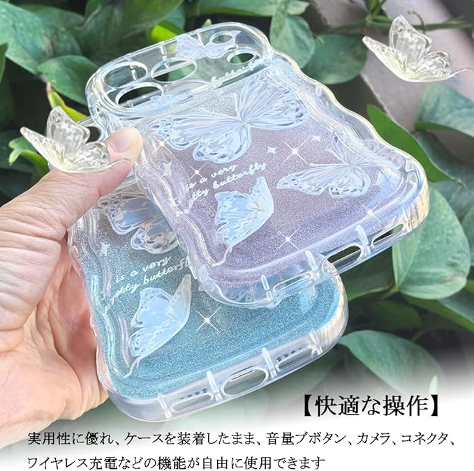 JOOBOY スマホケース 対応 クリア 透明 キラキラ 蝶々 波型 かわいい tpu ソフト 薄型 軽量 女性人気 キャラクター 衝撃吸収 指紋防止 ストラップホール付き 対応 携帯ケース