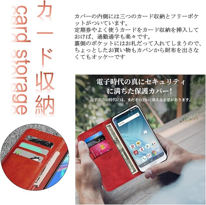 マグネット搭載:に搭載されているマグネット式のフリップにより、カバーをしっかり固定することができます。このケース 手帳型ならではの全面保護機能でディスプレイはもちろん、背面もしっかりガードします。さらにカメラレンズ保護構造でスマホ本体を傷から360度しっかり保護してくれます