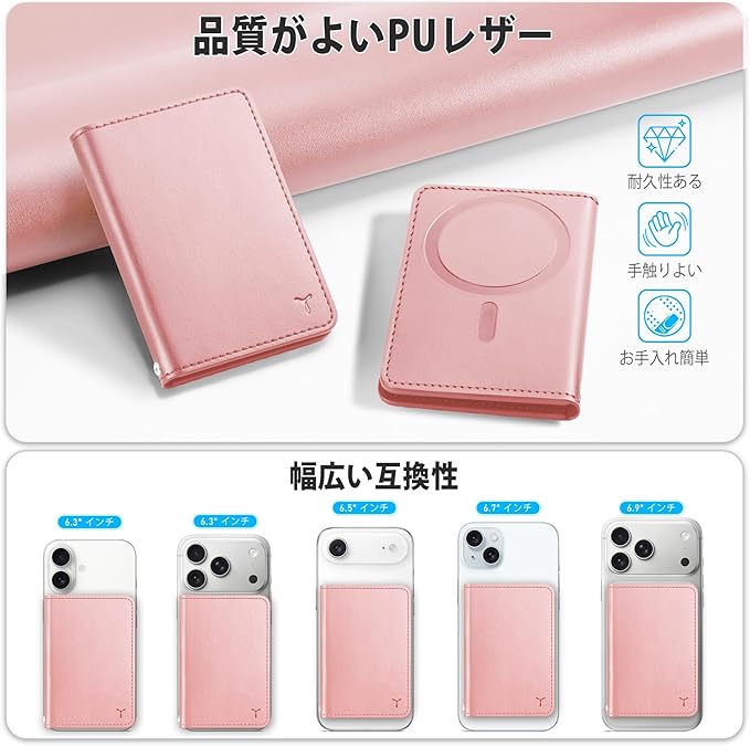[TUCCH] スマホカードケース 磁気吸着 6枚カード収納 [RFIDブロッキング] PU合皮 脱着簡単 軽量 背面 カードウォレット 磁気ウォレットケース iPhone17/16/15/14/13/12シリーズ対応 ローズピンク