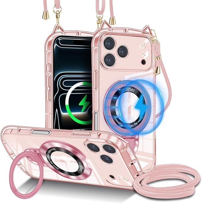 【多目的キャリー & ファッションデザイン】調節可能なストラップにより、サイド、またはフロントに持ち運べるときに完璧にあなたの隣に掛けることができます。 このアクセサリーはファッションだけでなく、通常のストラップよりも快適で実用的です。 作業、旅行、出張、ショピング、散歩、コンサート、パーティーに最適です。手を離しても、携帯電話を携帯できます。 【スタンド機能】多機能スタンドとリング一体型の斬新なデザインです。隠しスタンドの設計で、省スペース性に優れ、収納するときは水平的に置けできて、持ち運びの邪魔になりません。縦置きでも横置きでも安定して支えられ、40 ~120 の間で多角度自由に調整できます。FaceTimeでも動画でも両手が完全に解放されます。また、安定したアルミ合金製の円形スタンドを採用しており、携帯性からもファッション性からも唯一無二の存在です。【簡単着脱・美しさを保つ】猫耳部分にストラップ穴が設けられているのでストラップを簡単に取り付けたり取り外したりでき個人の好みに合わせて装着することができます。猫耳のデザインはストラップを取り外しても可愛らしさが損なわれず一体感のあるデザインで美しさを保ち続けます。【 360 全面保护】、各穴に誤差がなく、すべての機能はケースをつけたままスムーズに操作できます。ケースは、型どりを緻密に実施しておりレーム部分とカメラのフチをちょうどいい設計し。平らな場所においても、画面とカメラレンズに直接触れることがなくまたケースの四隅に落下時の衝撃を効率よく吸収するための技術落下時の衝撃を最小限に抑えます。 【フレキシブル&柔軟】 このTPU+PC ケースは、ネックバンドの電話ケースは高品質のンで作られ、透擦り傷防止 柔らかい手触り滑り止め 黄変防止衝突や引っかき傷から電話を保護できます 調節可能なショルダークロスボディネックレス このアクセサリーはファッションだけでなく、通常のストラップよりも快適で実用的です。