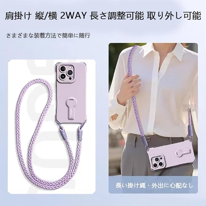weiaoluo iPhone17 pro max 対応 スマホケース,携帯電話ケースは液体シリカゲル材質を採用し、落下防止、落下防止、指紋防止、地震防止、摩擦防止の特徴がある。携帯ケースの背面にはの防滑シリカル支架,30 ~ 60 の調整が可能な範囲,スタンドは折り畳んで携帯ケースの背面に貼り付けることができ、日常の携帯に影響を与えない。また、ストラップも付いています,携帯電話の使いやすさをより便利にし、バッグのように体に斜め掛けして装着することができ、落下防止はもちろん、紛失防止にも役立ちます。特に旅行時、仕事、旅行、出張、買い物、散歩、コンサート、パーティーに適しています。ストラップはロープ編みでシンプルなデザインで、おしゃれで気前の良い特徴を演出しています。