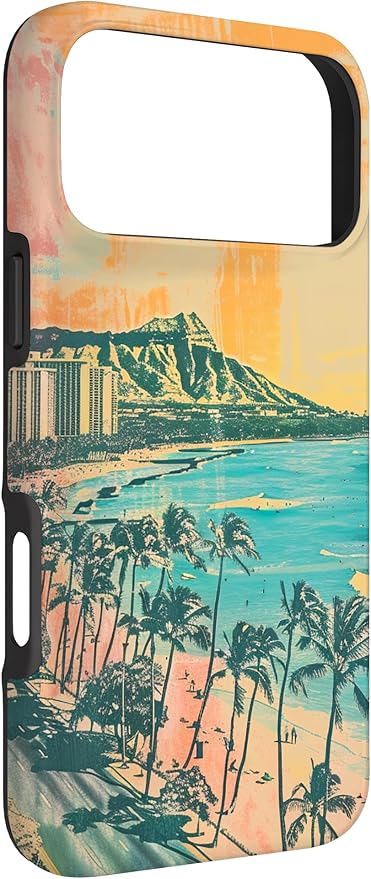 ヴィンテージ ハワイアン ビーチ ミニマリスト ヴェイパーウェーブ スマホケース iPhone 17 Pro Max 用
