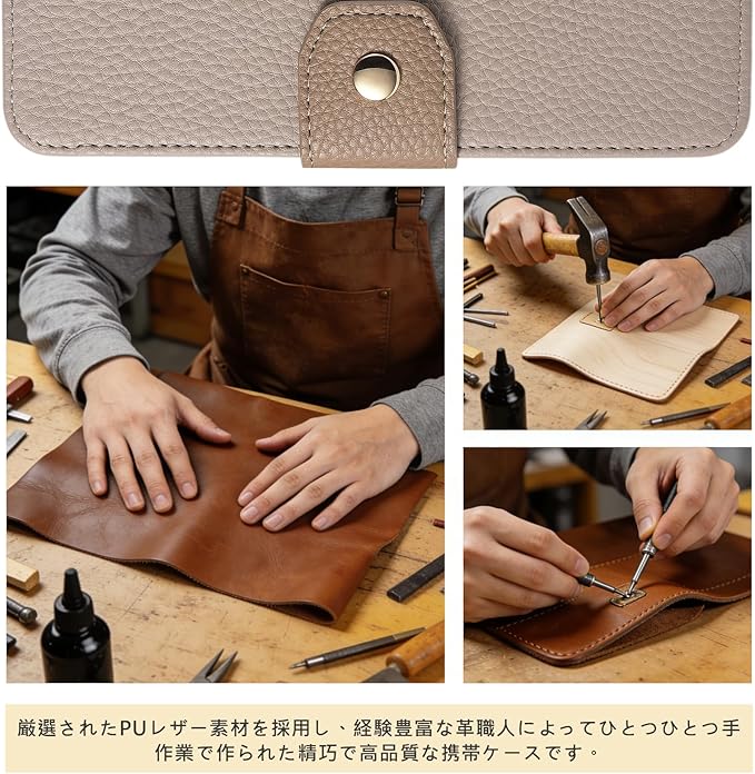 【高品質PUレザー&柔らかいTPU】肌感PUレザー +柔軟なTPUカバーと組み合わせ、厳選された革を採用しており、目に見える高級感と抜群な、肌のような手触り感、長時間使っても、手に汗が出てもケースは変なにおいが出てきません。インナーケースはソフトなTPU素材で、全面保護を与える同時に着脱しやすいです、スマホ本体への損傷の心配ありません、耐衝撃性。