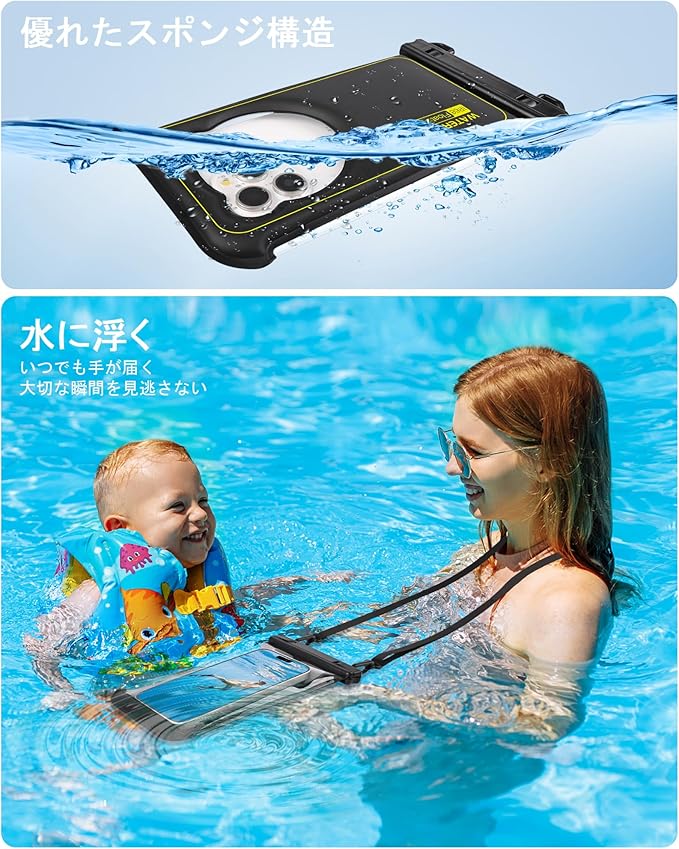 「水中撮影・透明設計」このスマホ防水ケース完全防水の表面は高透光で、光の透過率は99.99%を超え、顔認証も一瞬で完了。また、両側に3D透明化されており、例え水中でも簡単にスマホのサイドボタンを押せます。水中撮影にぴったりです。更に、防滴デザインのため水滴が残ったり,曇ったりはしません。いつでもクリアな画面で気楽に水中撮影ができます。その他、タッチ操作や電話応対などの操作もスームズにできます。★ご注意❗❗★タッチ反応しない場合、プールスマホ防水ケースの表面を綺麗にしてもっと力を入れてタッチしてください。★水圧の影響で水中撮影の際に、ボリュームボタンの使用はお勧めです。