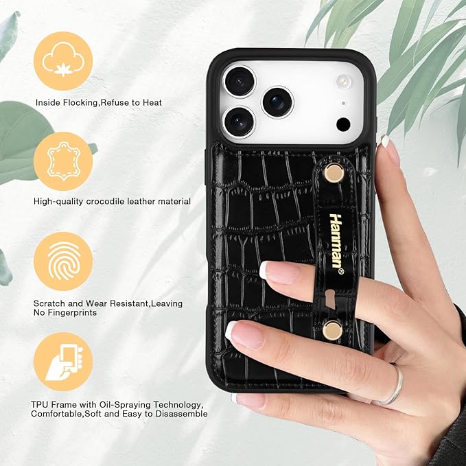 独占カスタマイズ:調節可能なリストバンドストラップキックスタンドケース付きHanmanレザーケースは 適用される iPhone 17 Pro Maxに適合しますが、他の電話モデルには対応していません。ご注文前に 適用される iPhone 17 Pro Maxリストバンドケースが必要であることをご確認ください