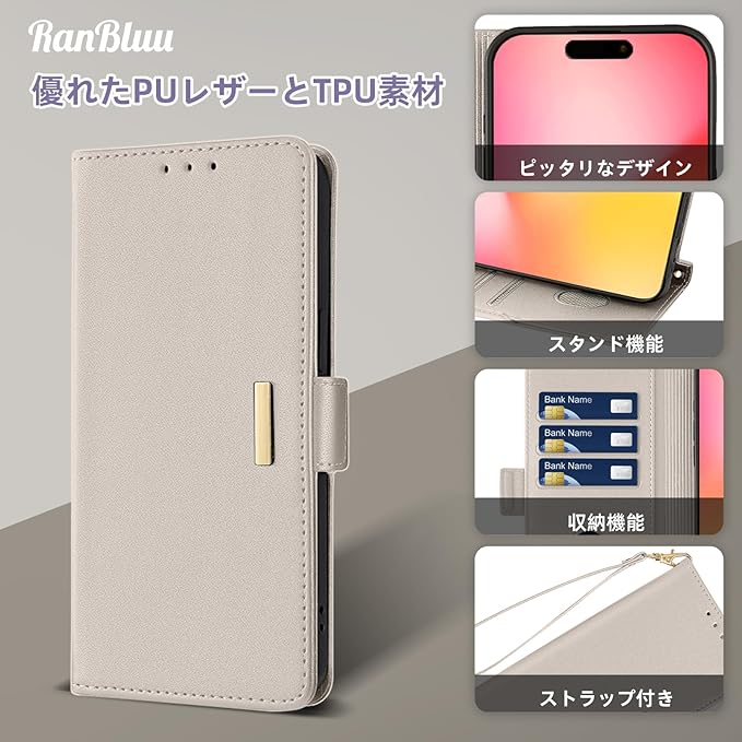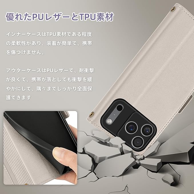 コンパチブル iphone 17 Max ケース 手帳型 アイフォン 17 max 用 高級PUレザーケース カバー スマホケース 財布型 カード収納 マグネット カメラ保護 横置きスタンド機能 ストラップ付き 耐摩擦 耐衝撃 全面保護(iphone 17 Max 対応 アイボリー)