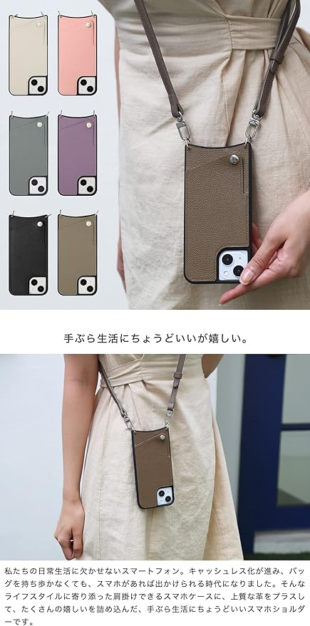 本革 スマホケース iPhone用 17 Pro Max 互換性 対応ケース スマホショルダー ショルダーケース カード収納 ロングストラップ (マイゼーナ)