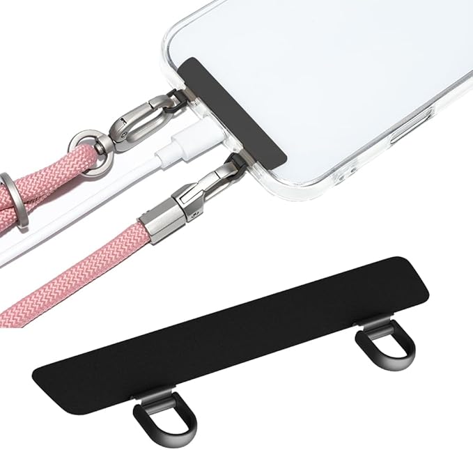 【2口タイプ、iPhone 17シリーズ/iPhone ストラップに対応】: 2つ吊りのホルダーで、iphone 17/17 air/17 pro/17 pro maxのケースとiphone クロスボディストラップに対応できます。本製品は2つの掛けリングをデザインされて、ケースのスピーカー口に通して装着し、充電ケーブルの接続を完全に邪魔しなくて、シールを挟んだままでも充電やイヤホンのケーブルを挿すことができます。