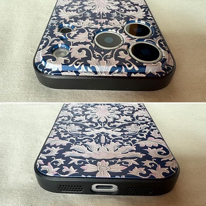 KOLO【宮廷 花草】iPhone対応 17 Pro Max 中国風 シノワズリのスマホケース スマホカバー(紺) iPhone17 Pro Max