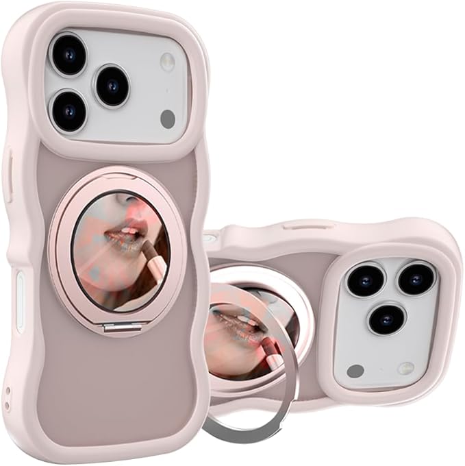 互換品 ケース Iphone17Pro Max用の ケース magsafe対応 超強磁力 TPU 韓国 可愛い ウェーブ ソフト 滑り止め 鏡付き 耐衝撃 半透明 マット感 おしゃれ 360 回転スタンド 縦横両対応 スマホケース iphone 17Pro Max 用 マグセーフ リング マグネット搭載 (360JZ-17pm-fen)