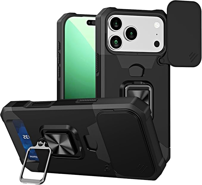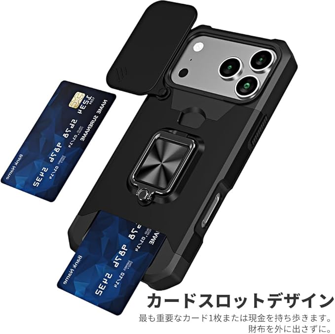 NKECXKJ iPhone 17 Pro Max / いphone17promax 対応 スマホケース + 强化 ガラス フ フィルム 財布型カード収納 横置き機能リング スタンド 耐衝撃 手帳型 Case Cover アイフォン17promax iphone17プロマックス 用ケース 背面 カバー(ブラック)
