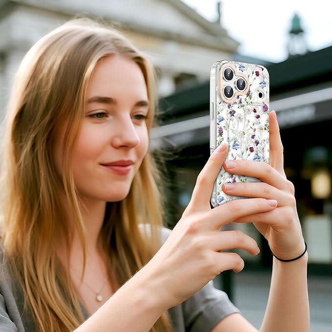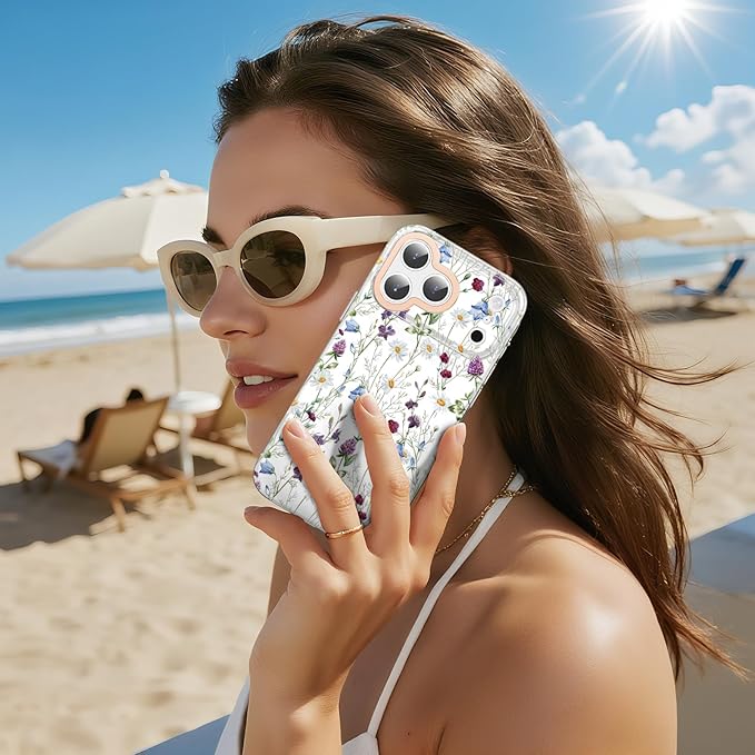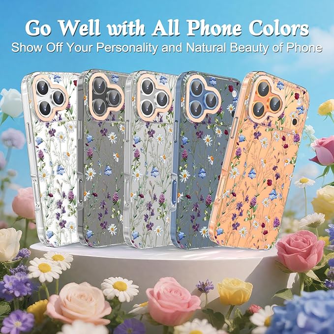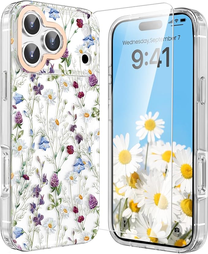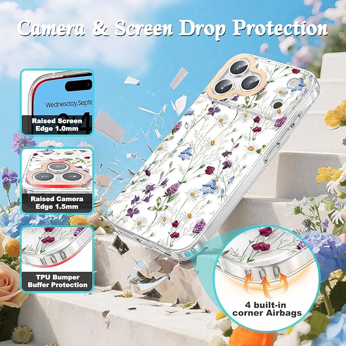 MILPROX iPhone 17 Pro Max 対応 花柄ケース マット背面 サラサラ手触り 指紋/手垢つきにくい 黄変しない 耐久性 可愛い おしゃれ フラワー 女性人気 強化ガラスフィルム付き 6.9インチ(カモミール)