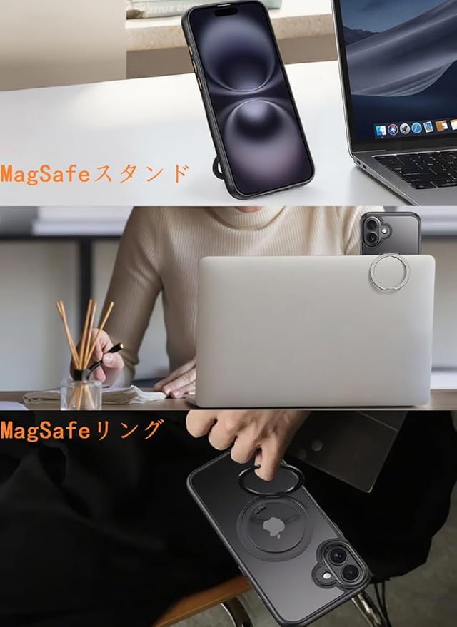 特徴 360 回転可能, Magsafeリングス, Magsafe対応, カメラプロテクター内蔵, 隠しスタンド機能 縦横両対応