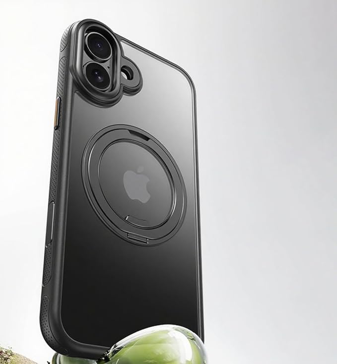 iPhone17 Pro Max MagSafe対応 ケース 360 回転しスタンド+リング付き 【カメラコントロールボタンの範囲】ゴムオイルコーティングアイフォン17 プロ マックスカバースタンド機能 縦横両対応 HILEGENERカメラレンズ保護 半透明 マット感 隠しスタンドケース あいほん17 Pro Max-ブラック