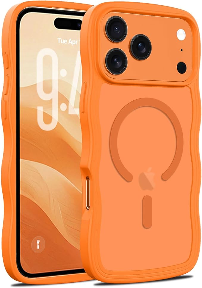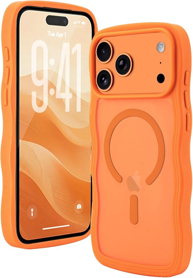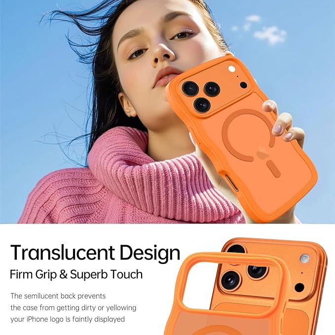Lafunda iPhone 17 Pro Max 用 ケース MagSafe対応 ウェーブ 滑り止め 半透明 マグネットカバー かわいい おしゃれ 耐衝撃 薄型 軽量 ワイヤレス充電 アイフォン 17 Pro Max 用 スマホケース (オレンジ)