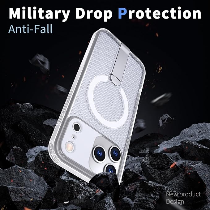 放熱 iPhone 17 Pro Max 対応 ケース Magsafe対応 縦置き スタンド付き アイフォン17promax 用 カバー メッシュ 放熱ケース 耐衝撃 薄型 軽量 ,白