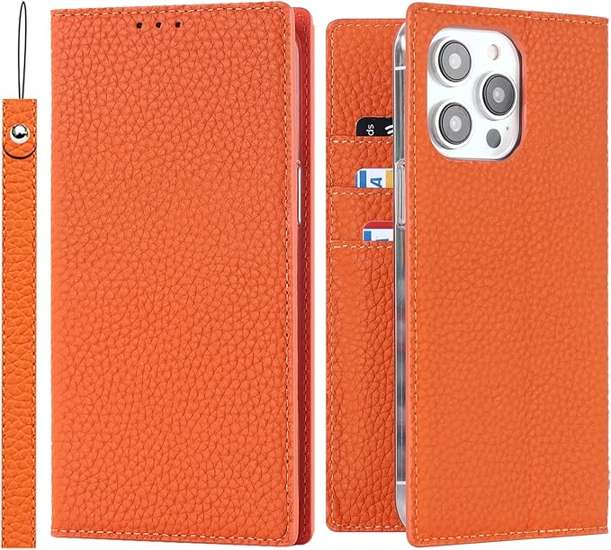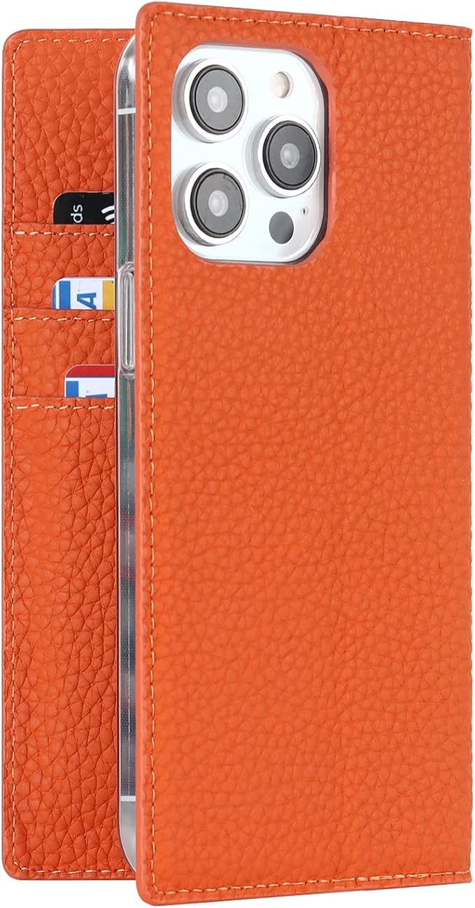 iPhone 14 Pro Max ケース手帳型 iphone 14 pro max 専用 カバー 財布型 ライチ紋様 本革レザー アイフォン 14 pro max ケース アイフォン14 pro max カバー 財布型 カード収納 収納付き 横置きスタンド機能 本革レザー(弱磁)衝撃吸収 全面保護 耐久性 耐衝撃 防塵 薄型 iPhone 14 pro max 適応 携帯カバー【選べる6色】6.7in-オレンジ