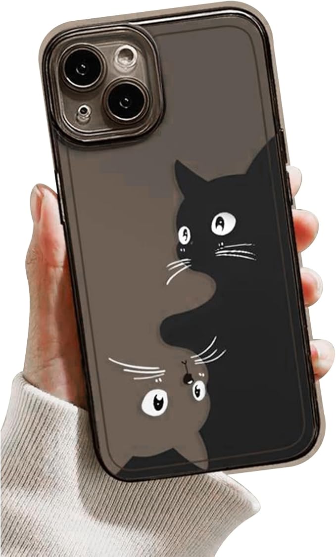 可愛い ねこ 猫 ネコ スマホケース iPhone 17 Pro Max 用 ケース (簡単) アイフォン 17 Pro Max 用 ケース (6.9インチ) シリコーン保護 指紋防止 スマホ バンパー すり傷防止 カラー(ブラック)