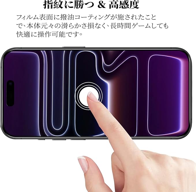 【高透過率・高感度タッチ】高透過率を持つ極薄ガラスフィルムに高耐久撥油コーティングが施され、 画面の精細さを保ちながらも、指紋や汚れが付きにくくなります。すべすべな滑り感を実現し、美しい画面とスムーズな操作体験をあなたにお届けします。