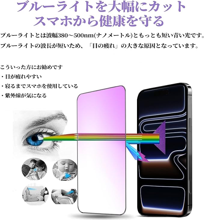 【ブルーライトカット 】 iPhone17 Pro Max 用 ガラスフィルム 【2枚】 液晶保護 フィルム ブルーライト 強化ガラス 【硬度9H/指紋防止/気泡ゼロ/飛散防止/貼り付け簡単/ガイド枠付き】+カメラフィルム【2枚】