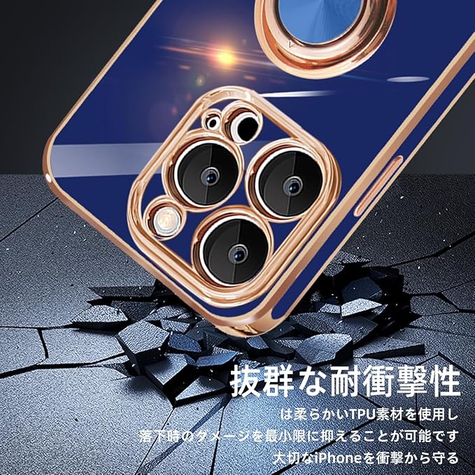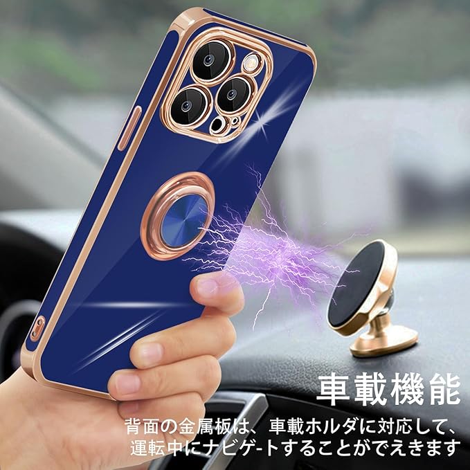 iPhone 14ProMax ケース リング付き アイフォン 14ProMax ケース スマホケース 携帯カバー 360 回転 リング スタンド機能 ストラップホール付き 車載ホルダー対応 耐衝撃 TPU メッキ加工 カバー iphone 14ProMax 6.7インチ用 (ブルー)