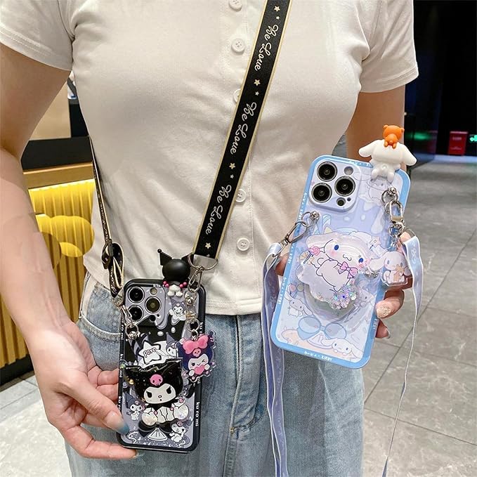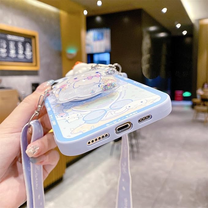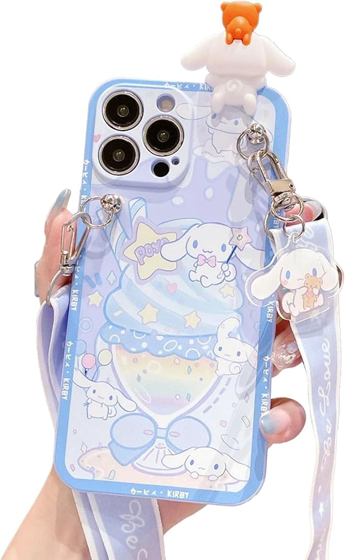 Arpe シナモロール スマホケース iPhone 17 Pro Max 用 ケース かわいい アイフォン 17 Pro Max 用 ケース (6.9インチ) 首かけストラップ 携帯ストラップ キャラクター 傷つきにくさを向上 カラー(青)