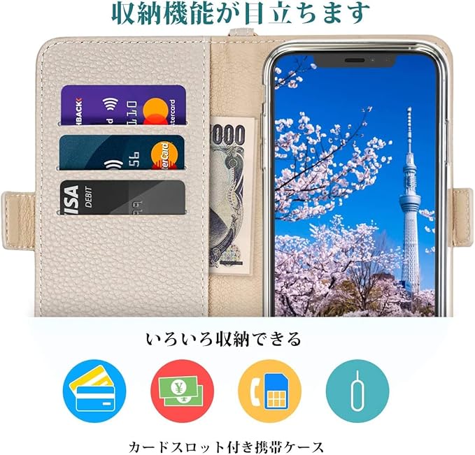 【上質な素材&落ち着いたデザイン】上質なPU合皮レザーを使用し、高級感と軽さにこだわったスマホケースです。しっかりとした作り、縫製・質感・手触りにも優れています。精密なデザインで、装着状態でも電源ボタン、音量ボタン、コネクター等が問題なく利用できます。ギフトとしてもおすすめいたします。