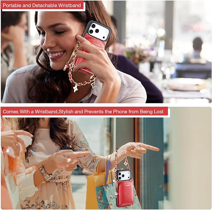 取り外し可能なリストレット:Hanman ブレスレットとショルダーストラップ付きレザ と互換性のあるiPhone 17 Pro Max ーウォレットケースで体験を向上させましょう。取り外し可能なリストストラップを備えた多目的なデザイン。付属の取り外し可能なリストストラップは、外出先でも携帯電話と財布を安全に保つための追加の方法を提供します。電気メッキの金属とレザーのリストバンドは非常に美しいです。クリスマス、春祭り、バレンタインデー、さまざまな集まりに最適なギフトです