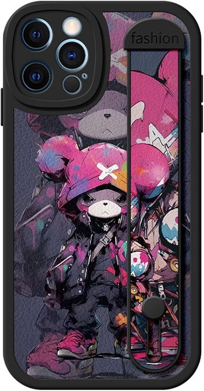 Arpe かわいい ベアブリック カウズ スマホケース iPhone 17 Pro Max 用 ケース アイフォン 17 Pro Max 用 ケース (6.9インチ) キックスタンド リストレット 傷つきにくさを向上 カラー(紫黒)