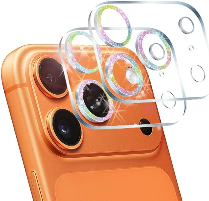 【2枚セット】 iPhone 17ProMax 用 カメラカバー カメラ保護 キラキラ 繊細な ラメ ケース アクセサリー 黒い 縁無し 強化ガラス レンズカバー レンズ フィルム かわいい 韓国 風 いphone カメラ保護 カバー フィルム おしゃれ レインボー,iPhone17ProMax