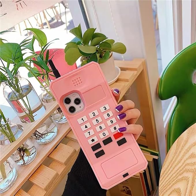 ソフトシリコンケース 互換性があるiPhone 17 Pro Maxかわいい3D漫画 レトロな電話ピンクケース 耐衝撃プロテクター 女性 女の子用