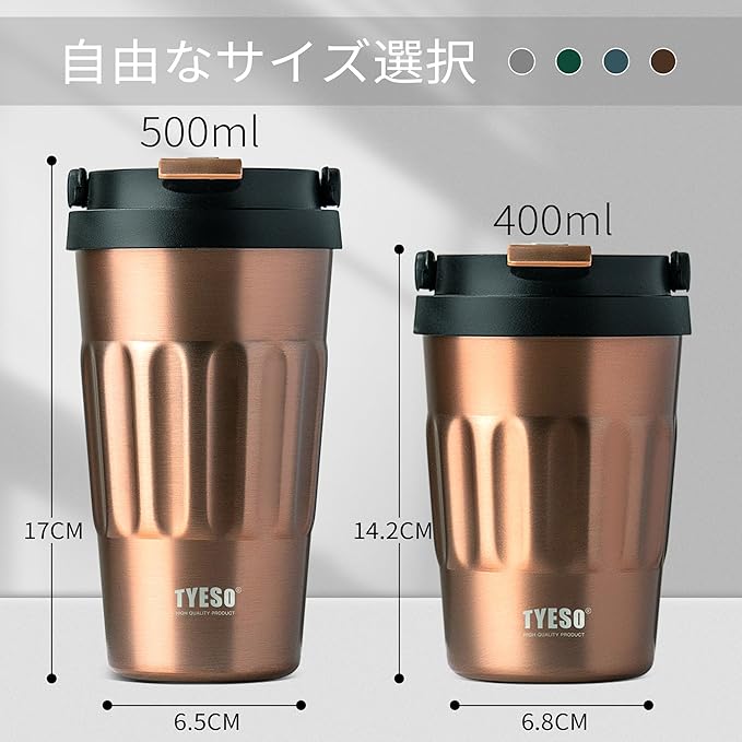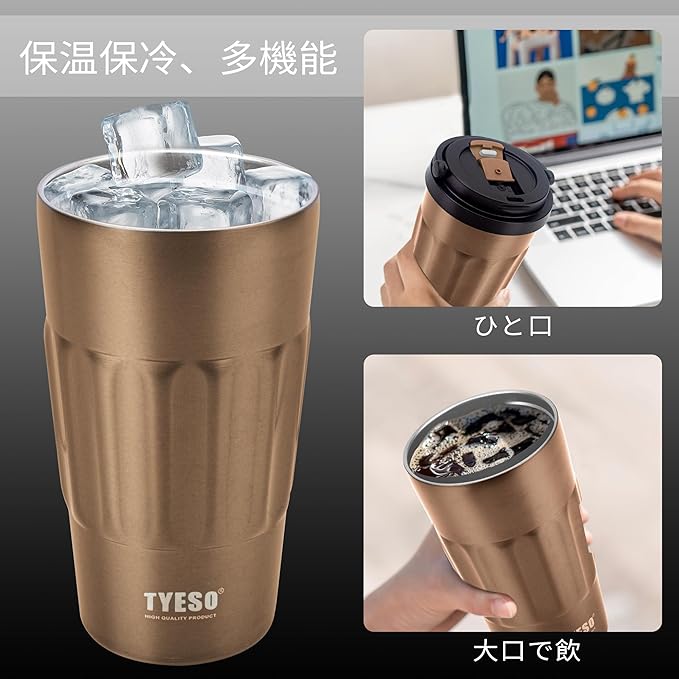 TYESO タンブラー 蓋付き 保温保冷 ハンドル付き コンビニコーヒーカップ ステンレス 真空断熱 持ち運び 取っ手付き 500ml カフェラテ マグカップ 直飲み TS-8804 砂金色