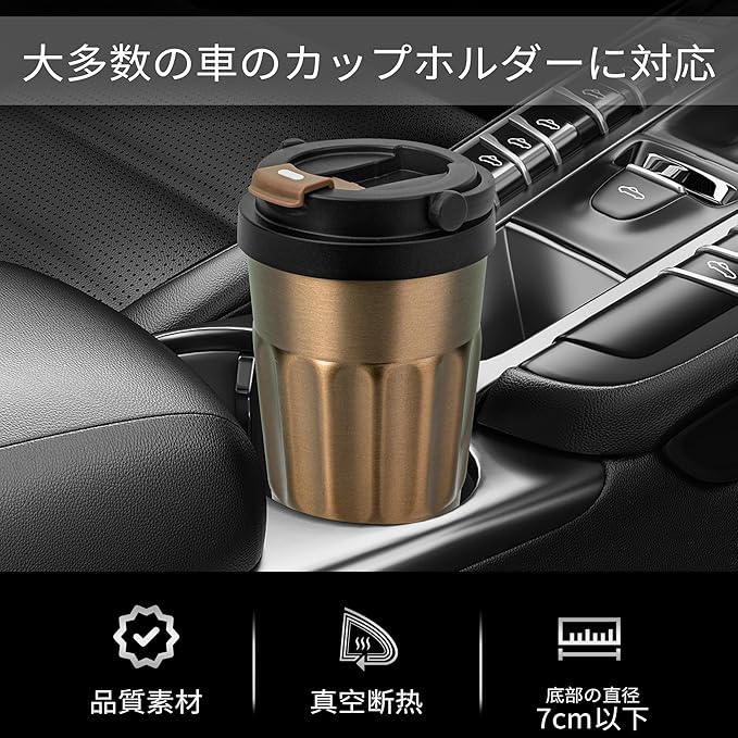 安定性抜群&滑り止め底: タンブラーの上部は広く、下部は狭く設計されているので、ほとんどの車のカップホルダーにぴったりフィットする。凹凸デザインの滑り止めベース、車内の揺れやオフィスデスクでも安定性抜群。