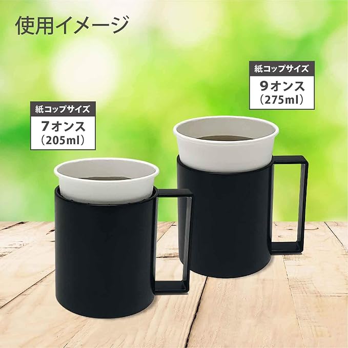 持ちやすく倒れにくい マグカップ みたいに使える 紙コップホルダー 紙コップ オフィス ホルダー 7オンス 9オンス レジャー 便利 安心 (ブラック2個入り)