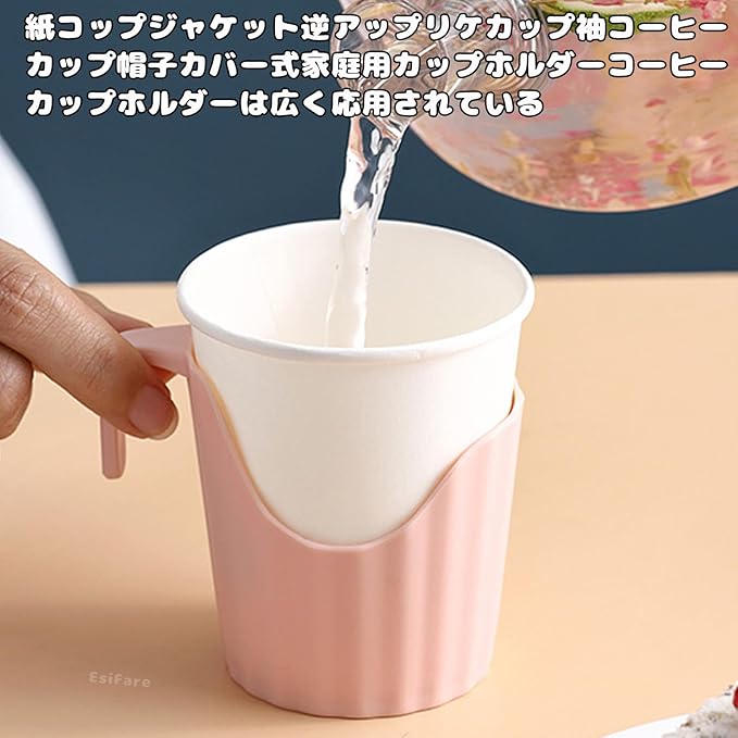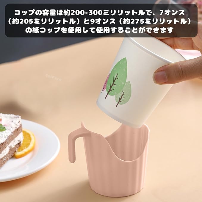 紙コップホルダー カップホルダー おしゃれ 紙コップ 6個セット 耐熱 200~300ml対応 ホルダー 断熱 ホットドリンク オフィス 家庭用 (pink)