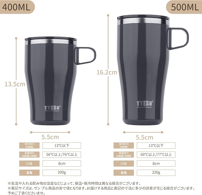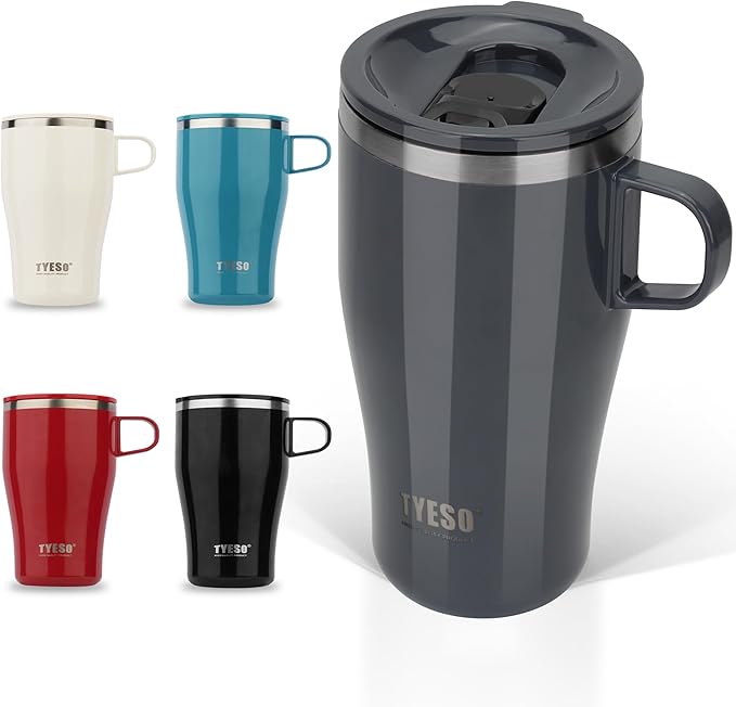 TYESO マグカップ タンブラー 蓋付き ステンレス鋼 真空断熱 大容量 保温保冷 コーヒー カップ 取っ手付き 持ち運び タンブラー プレゼント 500ml TS-8879 灰色