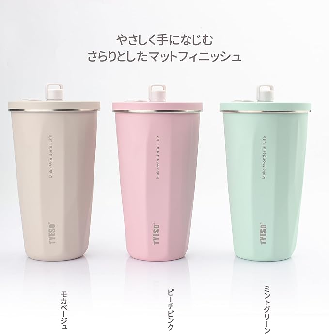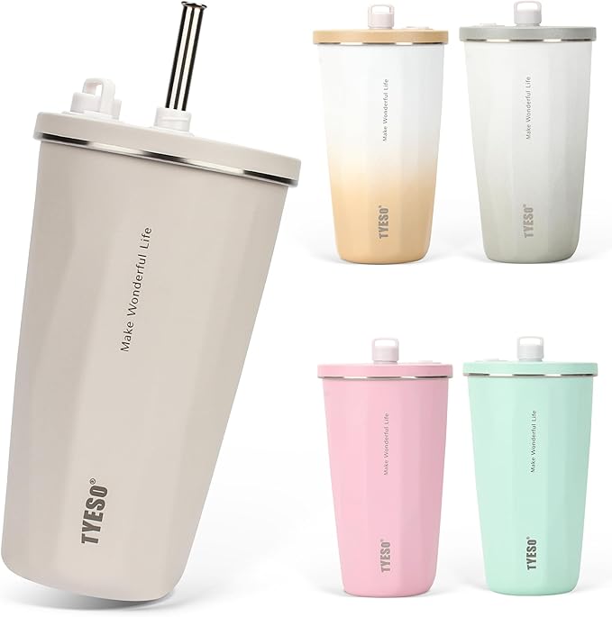 【SNSで話題】TYESO タンブラー ストロー付き 600ml ステンレス 蓋付き 真空断熱 保温 保冷 アウトドア 持ち運び便利 直飲み 漏れない 大容量 多色 トラベル 2025年アップグレード版