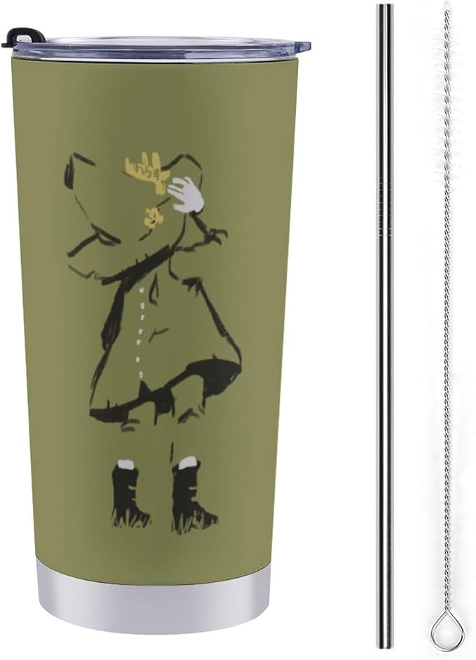 スナフキン マグカップ ストロー&ストローブラシ付き マグカップ コーヒーカップ 600ML コンビニカップ タンブラー ステンレス製 保冷 保温 車用 蓋付き 持ち運び 水筒 大容量 直飲み キャラクター かわいい
