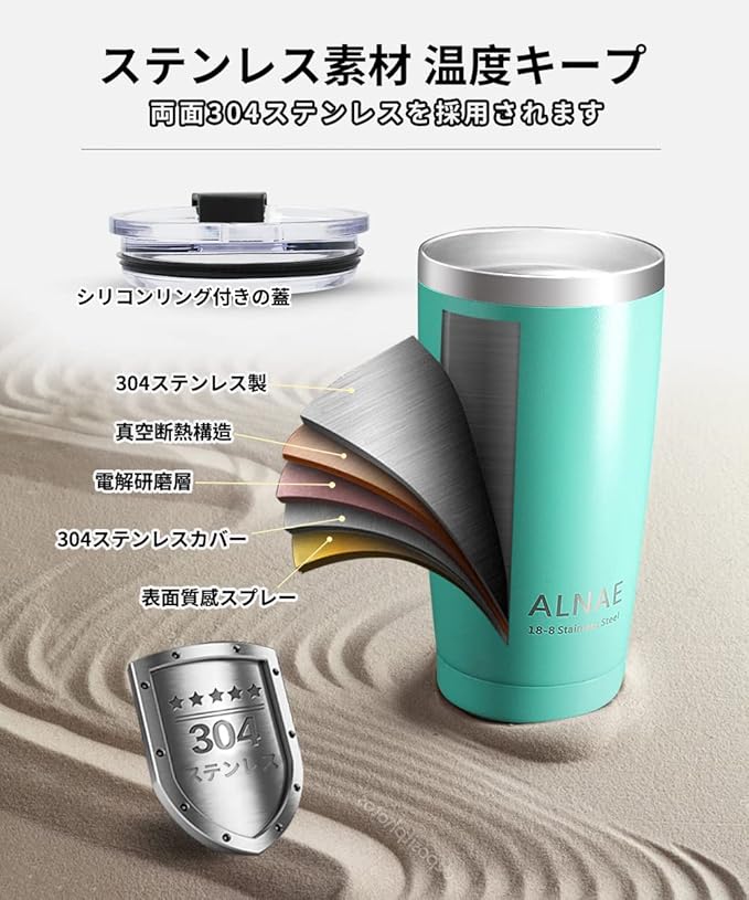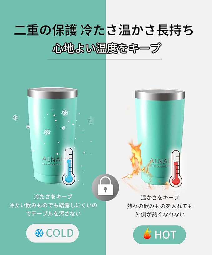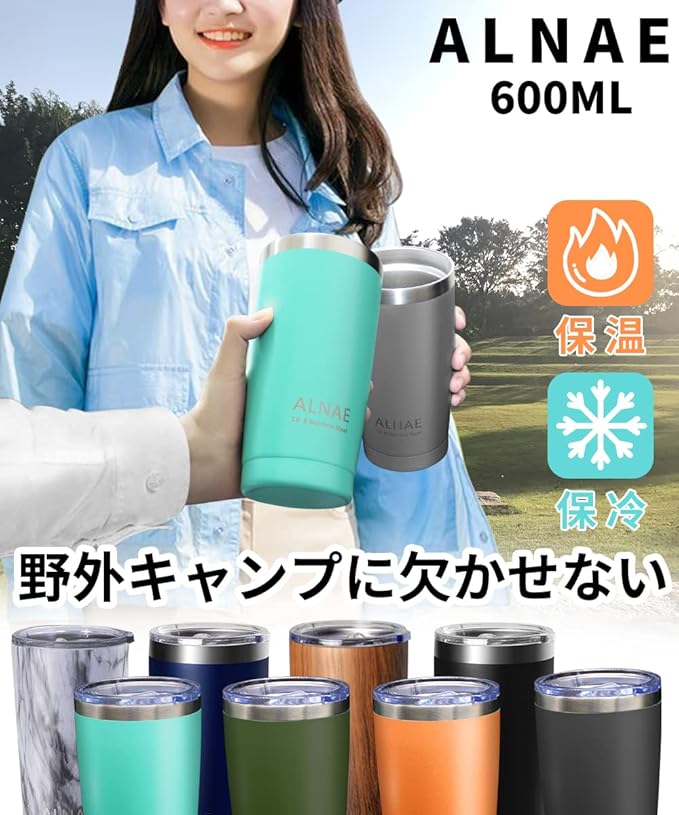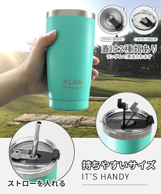 ALNAE タンブラー ふた付き600ml 真空断熱 魔法瓶 二重構造 マグカップ ステンレス コーヒーカップ コンビニマグ 大容量 ビール コーヒー 直接ドリップ ミントグリーン