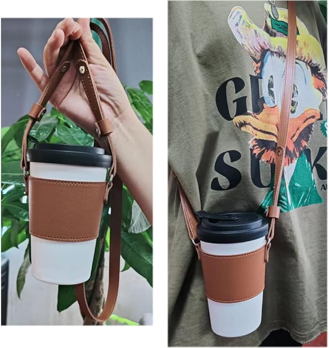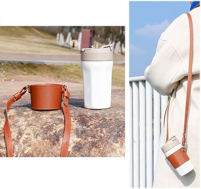Bombinate レザー カップホルダー 丸型 コーヒー 手提げ ハンドル ストラップ バッグ